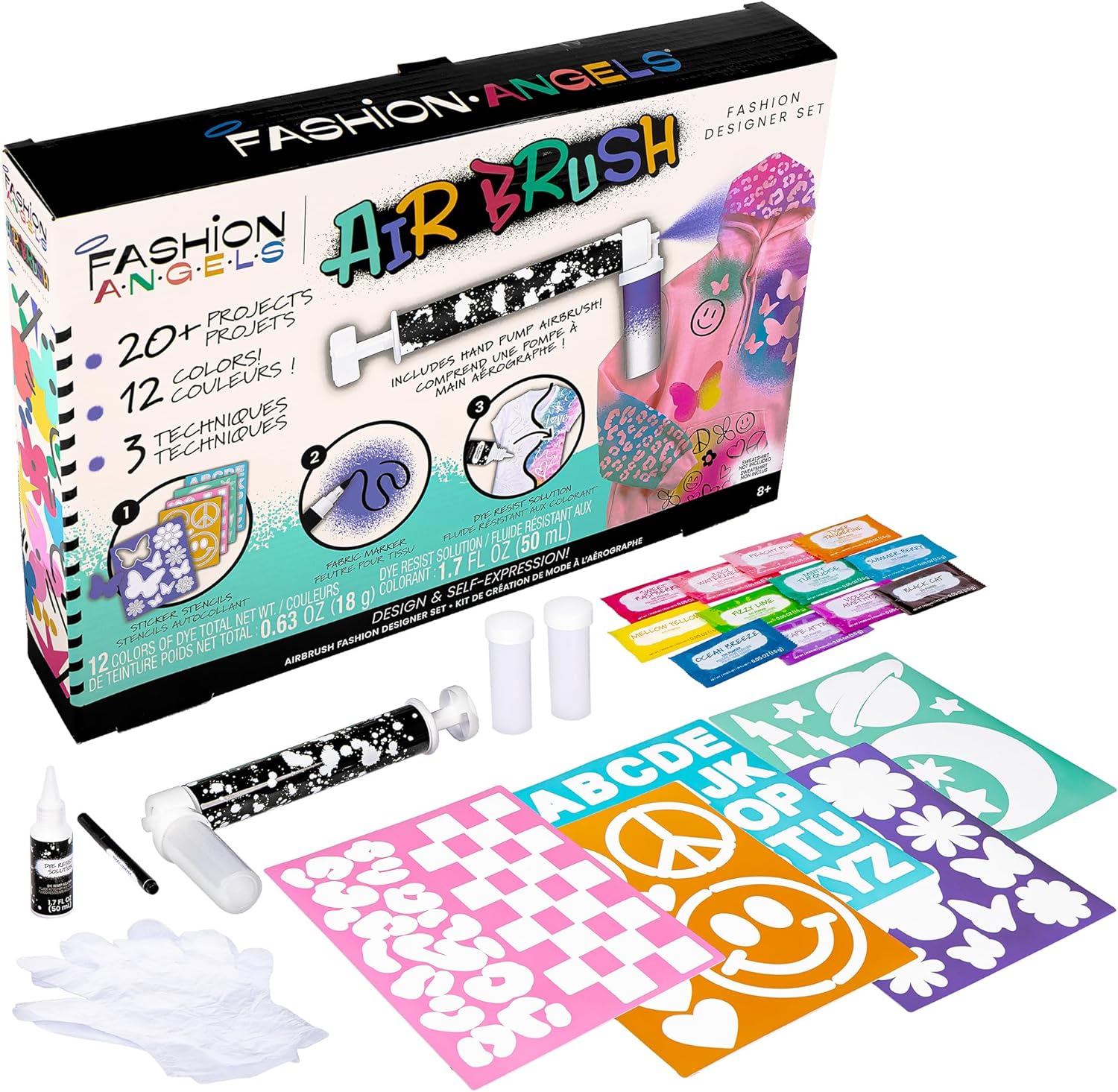 Fashion Angels Airbrush Fashion Design Set - Includes Airbrush Tool, Fill Containers, Tie Dye Powder Bags and Stencils - Accessorize T-Shirts, Hoodies & More - Makes 20+ Projects