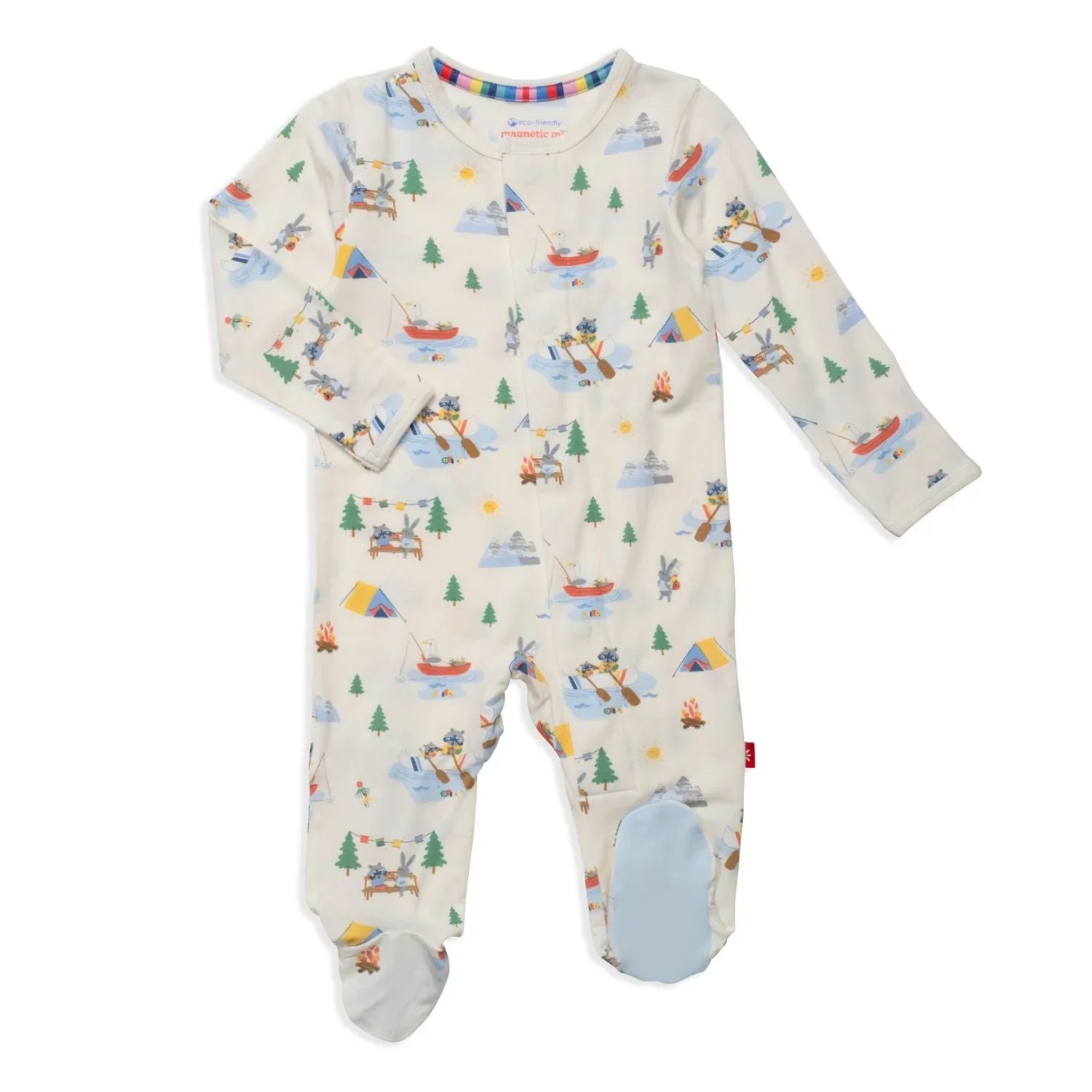 parent favorite footie is an everyday (and night) essential with magnetic closures that make dressing easy. magnets are quick, quiet, and a lifesaver for middle-of-the-night changes. eco-friendly TENCEL™ modal is silky soft, breathable, and gentle on sensitive skin. temperature-regulating properties will keep warm in winter, you cool in summer, and oh-so comfortable year round.