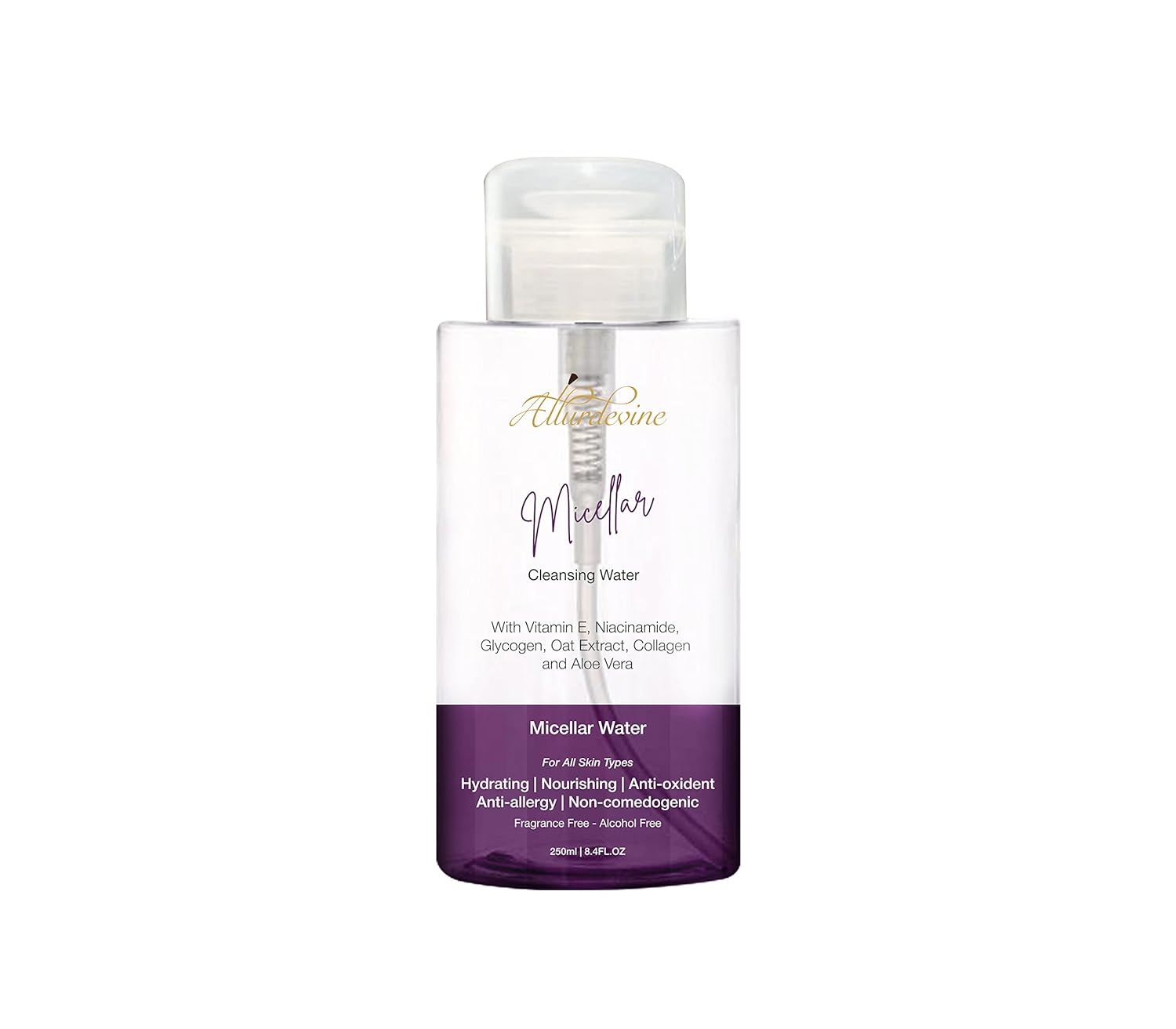 Micellar Water/Facial Cleanser (250ml / 8.4 fl oz) – Vitamin E, Collagen & Aloe Vera – Unscented Water-Based Makeup Remover – Hypoallergenic/Alcohol-Free